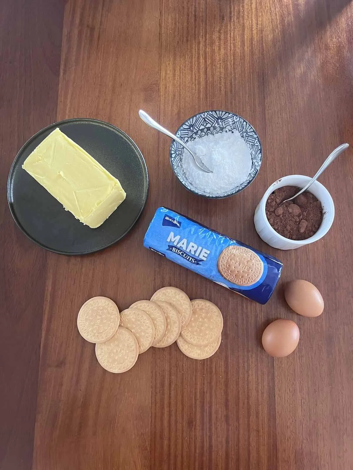 I also have this Marie Biscuit Squares Recipe that does not include eggs.